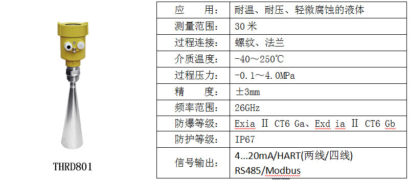 雷達液位計是一種采用微波測量技術的物位測量儀表。它能夠非接觸測量,耐磨損、耐老化性能高,不受壓力、真空或溫度的影響。因此它在易燃、易爆、強腐蝕性、高溫、粘稠等惡劣的測量條件下,性能卓越,特別適用于大型立罐和球罐等的測量。雷達液位計是一種采用微波測量技術的物位測量儀表。它能夠非接觸測量,耐磨損、耐老化性能高,不受壓力、真空或溫度的影響。因此它在易燃、易爆、強腐蝕性、高溫、粘稠等惡劣的測量條件下,性能卓越,特別適用于大型立罐和球罐等的測量。