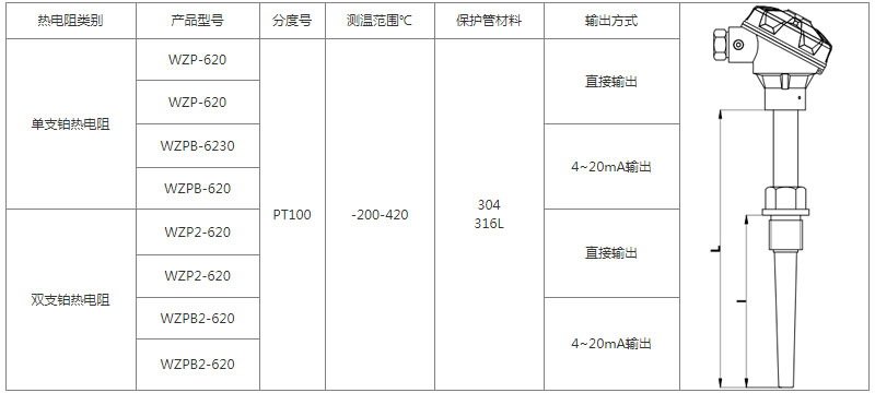 TH-WZP熱電阻(thermal resistor)是中低溫區常用的一種溫度檢測器。熱電阻測溫是基于金屬導體的電阻值隨溫度的增加而增加這一特性來進行溫度測量的。它的主要特點是測量精度高,性能穩定。其中鉑熱電阻的測量度是高的,它不僅廣泛應用于工業測溫,而且被制成標準的基準儀。熱電阻大都由純金屬材料制成,目前應用多的是鉑和銅,此外,現在已開始采用鎳、錳和銠等材料制造熱電阻。金屬熱電阻常用的感溫材料種類較多,常用的是鉑絲。工業測量用金屬熱電阻材料除鉑絲外,還有銅、鎳、鐵、鐵—鎳等。
